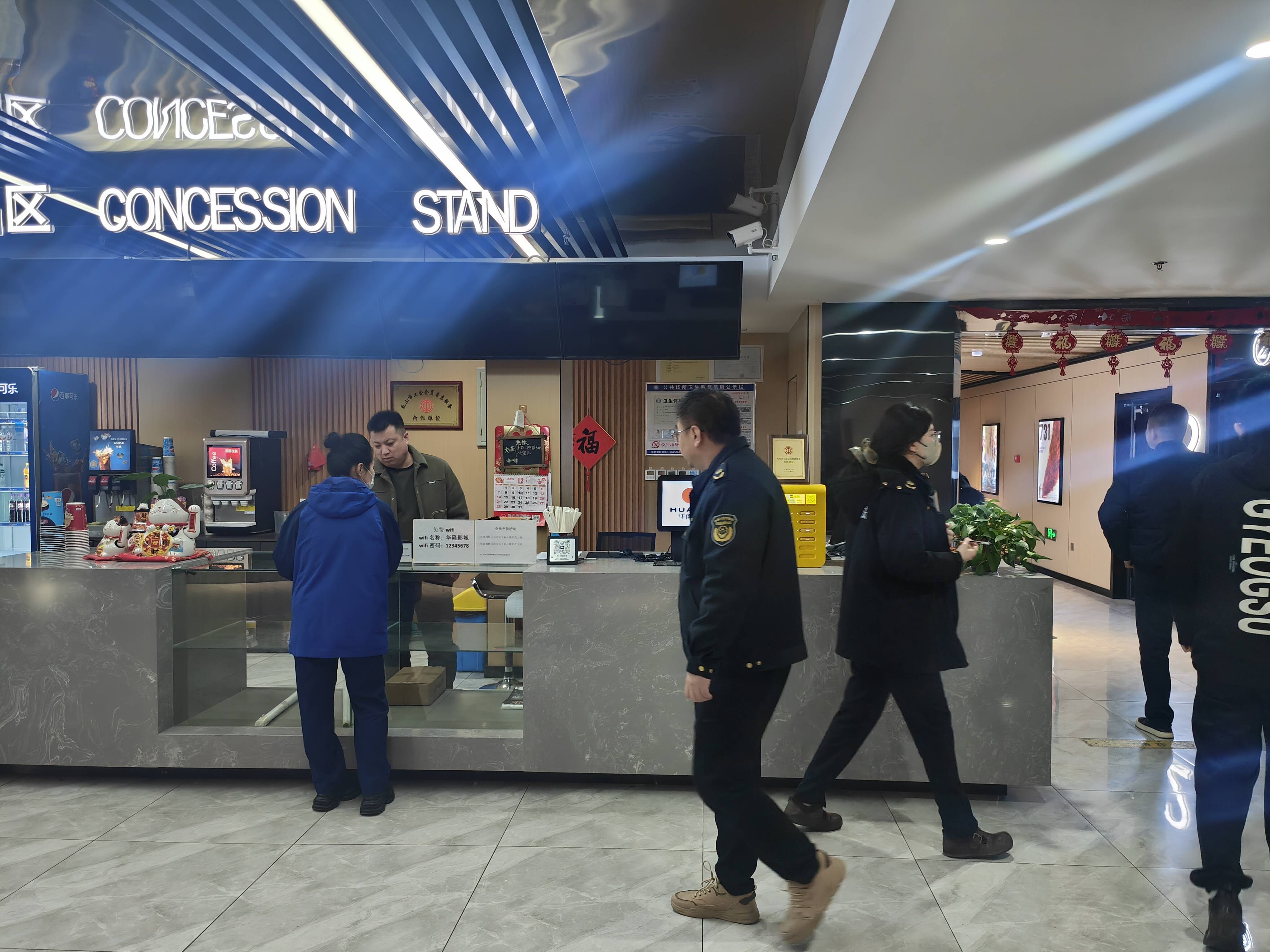 检查组深入放映厅、消防控制室、疏散通道等关键区域,全面检测灭火器材有效期、消防栓水压、应急照明及疏散通道畅通性,随机抽查影厅消毒记录、通风系统清洁维护情况及食品销售是否合规,核验票务系统数据真实性,现场查验突发事件应急预案的制定与完善情况,并帮助3家影院识别和预防易被忽视的潜在安全隐患。