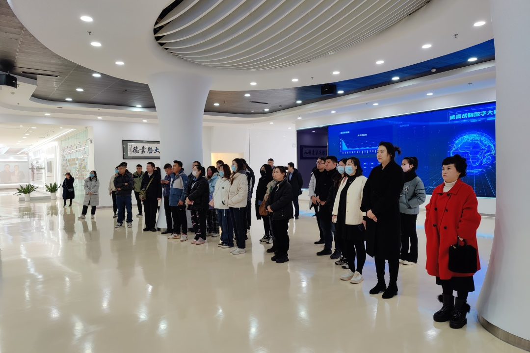 在威高集团总部数智展示中心展厅,讲解员介绍了企业的发展历程和信息化建设等情况,以威高集团发展全过程为案例,讲解一家企业如何实现高质量发展。